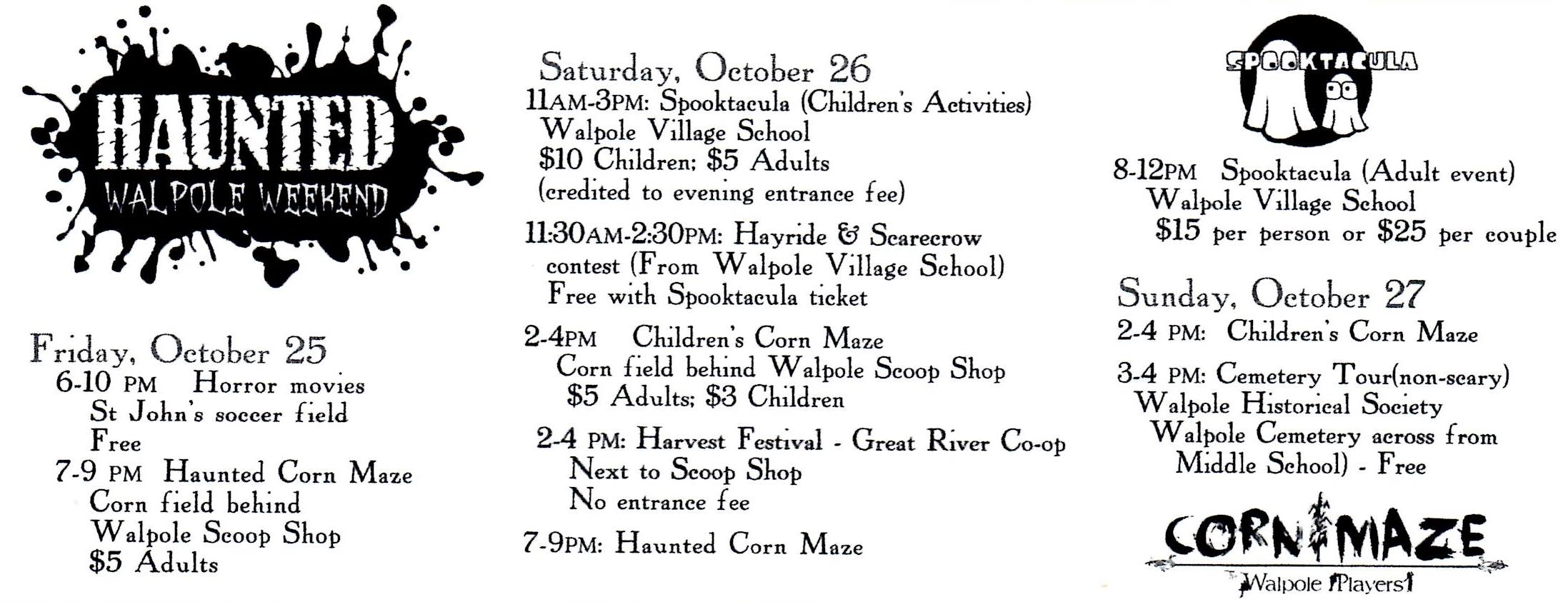 Keene has its Pumpkin Festival this weekend and Walpole follows up with a festive weekend as well. Enjoy the fun and plan ahead for the winter by attending the Freinds of the Library Book Sale. – Lil