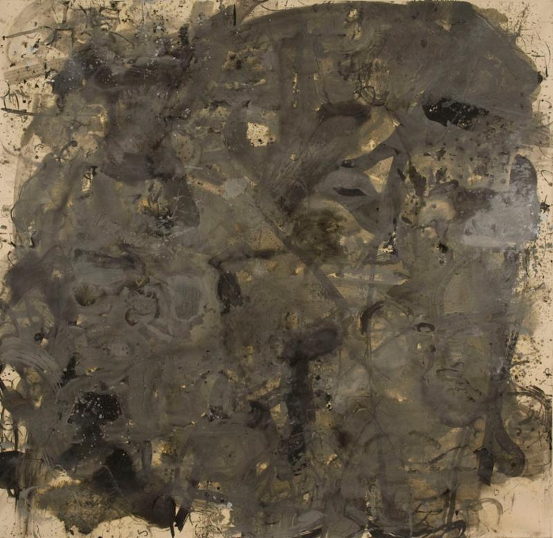 Michael Mulhern, Ash Road 6/45, 2003, black and aluminum painton gessoed paper, 106 x 111 inches