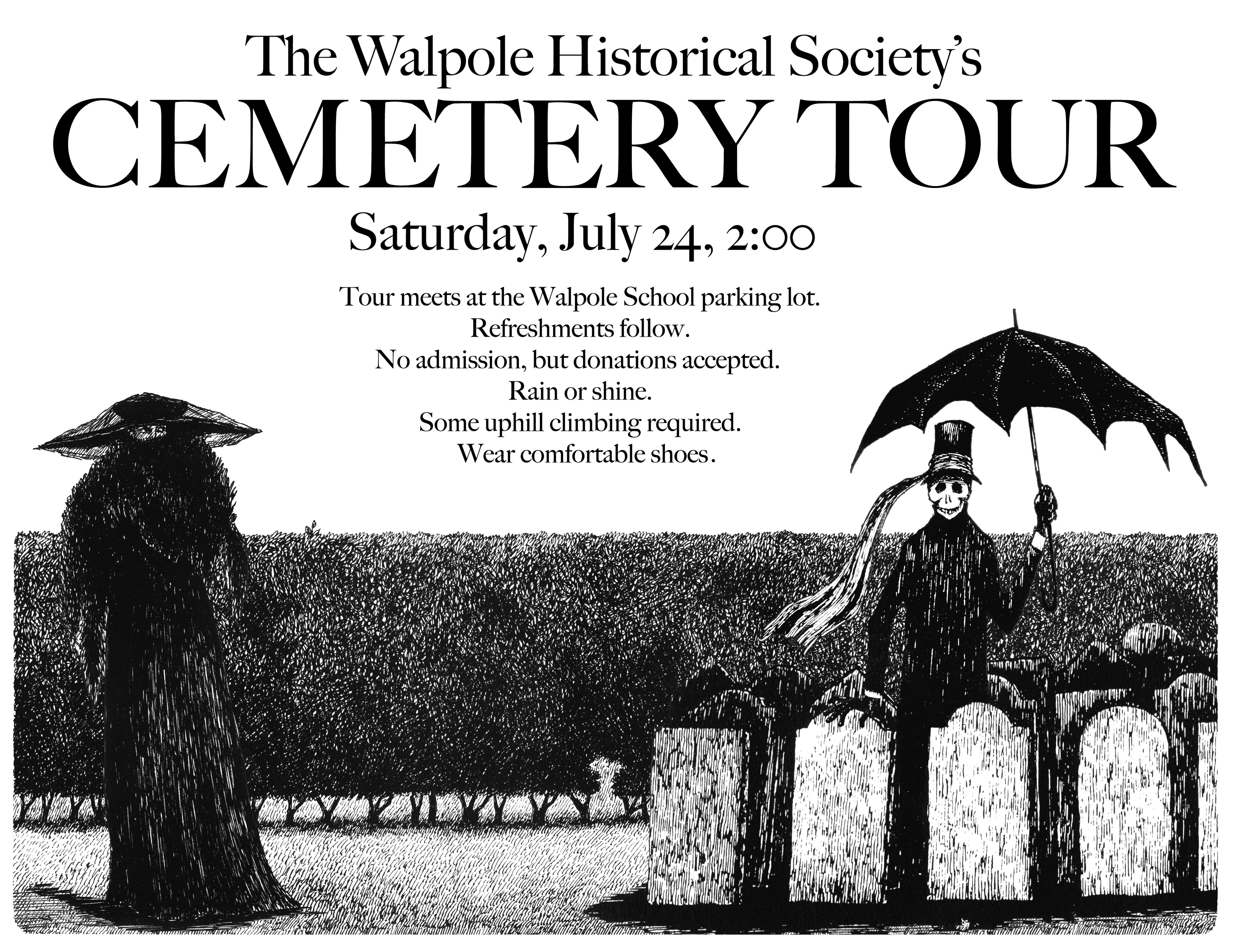 On Saturday, October 8th, not July 24 as it says in the poster, the old Walpole Cemetery will once again be visited by spirits of years past, and the spirits are just dying for company!