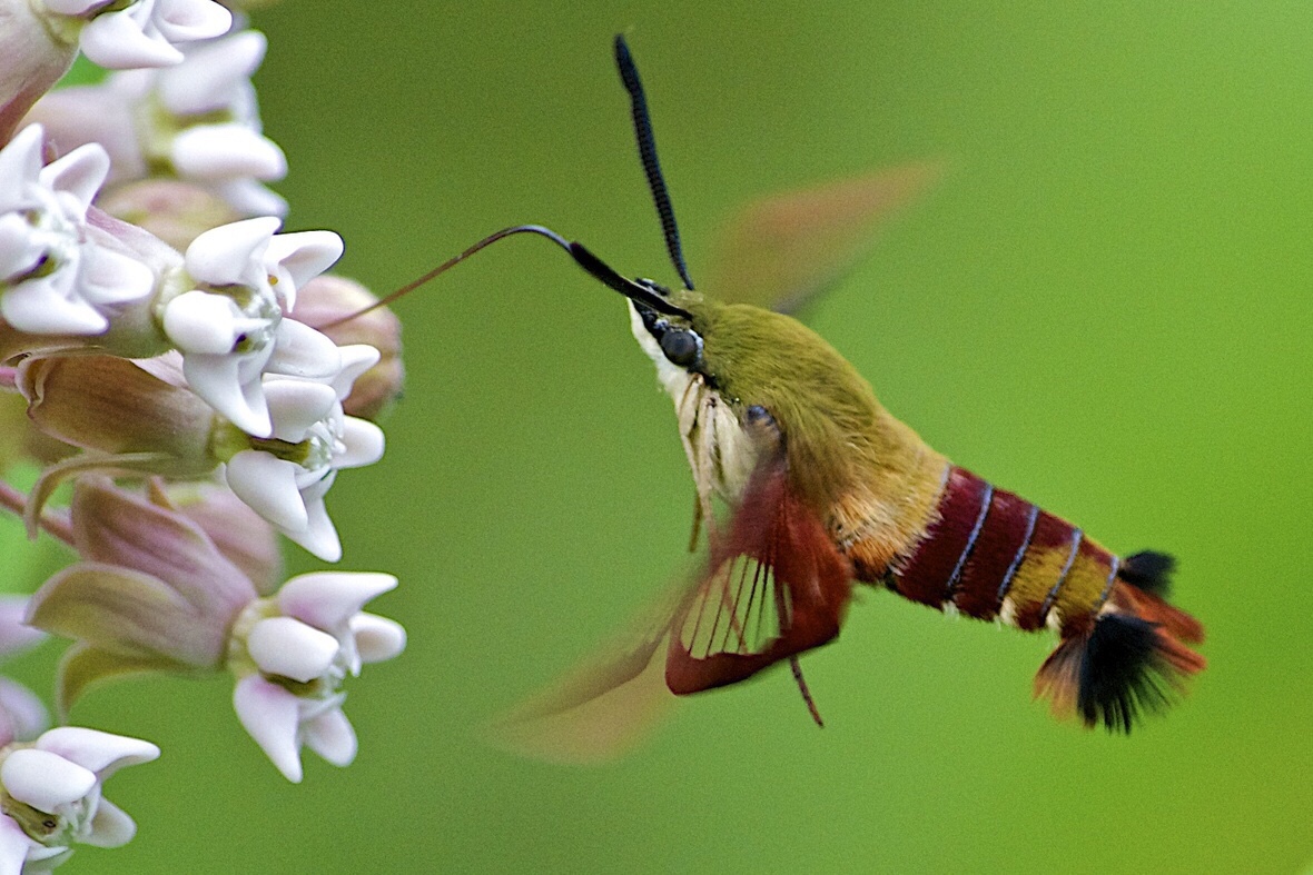 The beautiful hummingbird moths are back and visiting the gardens.