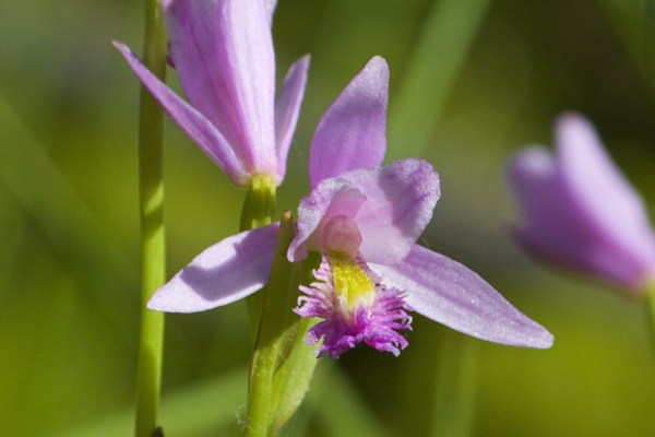 Rose Pogonia orchids (Pogonia ophioglossoides) are blooming in the cranberry bog at Distant Hill.