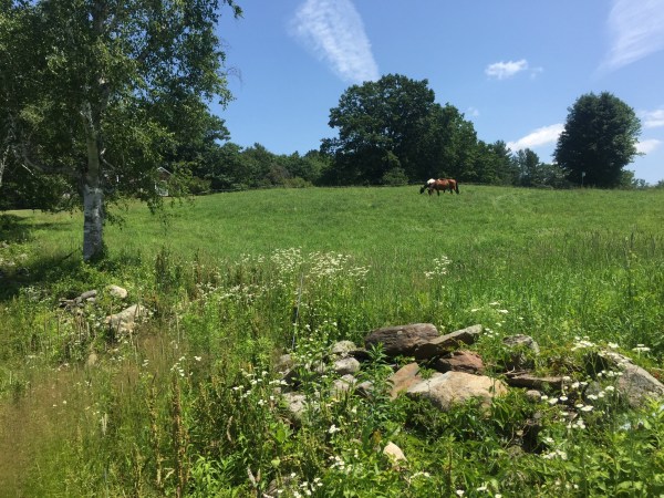 Horses graze on recently conserved land along Reservoir Road in Walpole. Photo courtesy of Monadnock Conservancy, © Stacy Cibula.