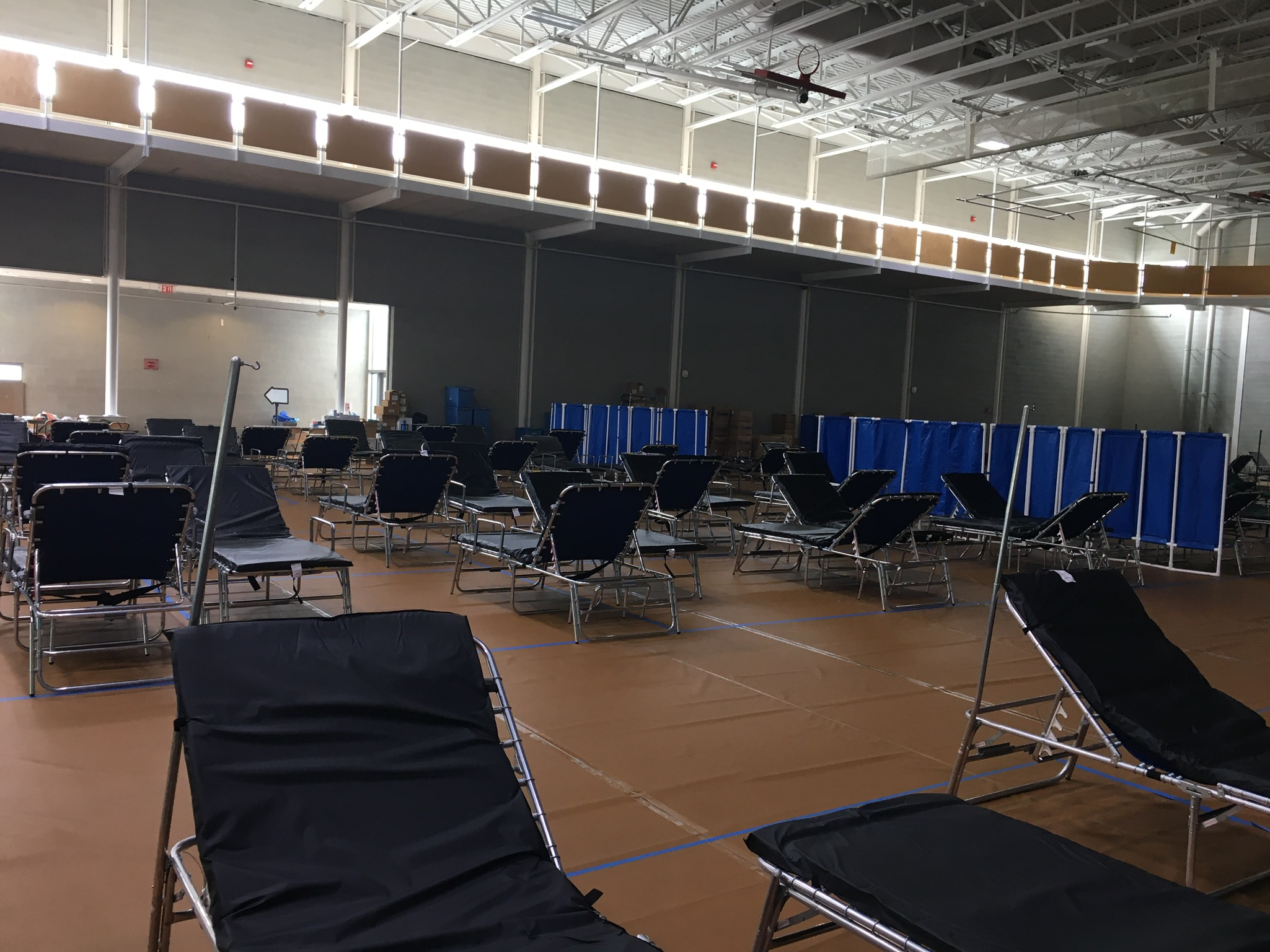 Yesterday, I had the privilege of touring the field hospital set up in the Spaulding Gymnasium at Keene State College, to be ready in case our existing health care facilities are overwhelmed. This was a huge collaborative effort, involving the College, Cheshire Medical Center, the City of Keene, the National Guard, and so many others. This was a working walkthrough, to coordinate how the surge hospital will function if it needs to open. Those who will be operating the facility talked about everything from the arrival and admission of patients, equipment, how food will be delivered, how the facility will be staffed, janitorial services, mechanical services, everything. Those who attended hope that no patient will ever need to enter the facility, that we will pass through this storm, and the space will be filled with the sounds of athletic activity again, soon. But in the meantime, people are ready, and the facility waits.