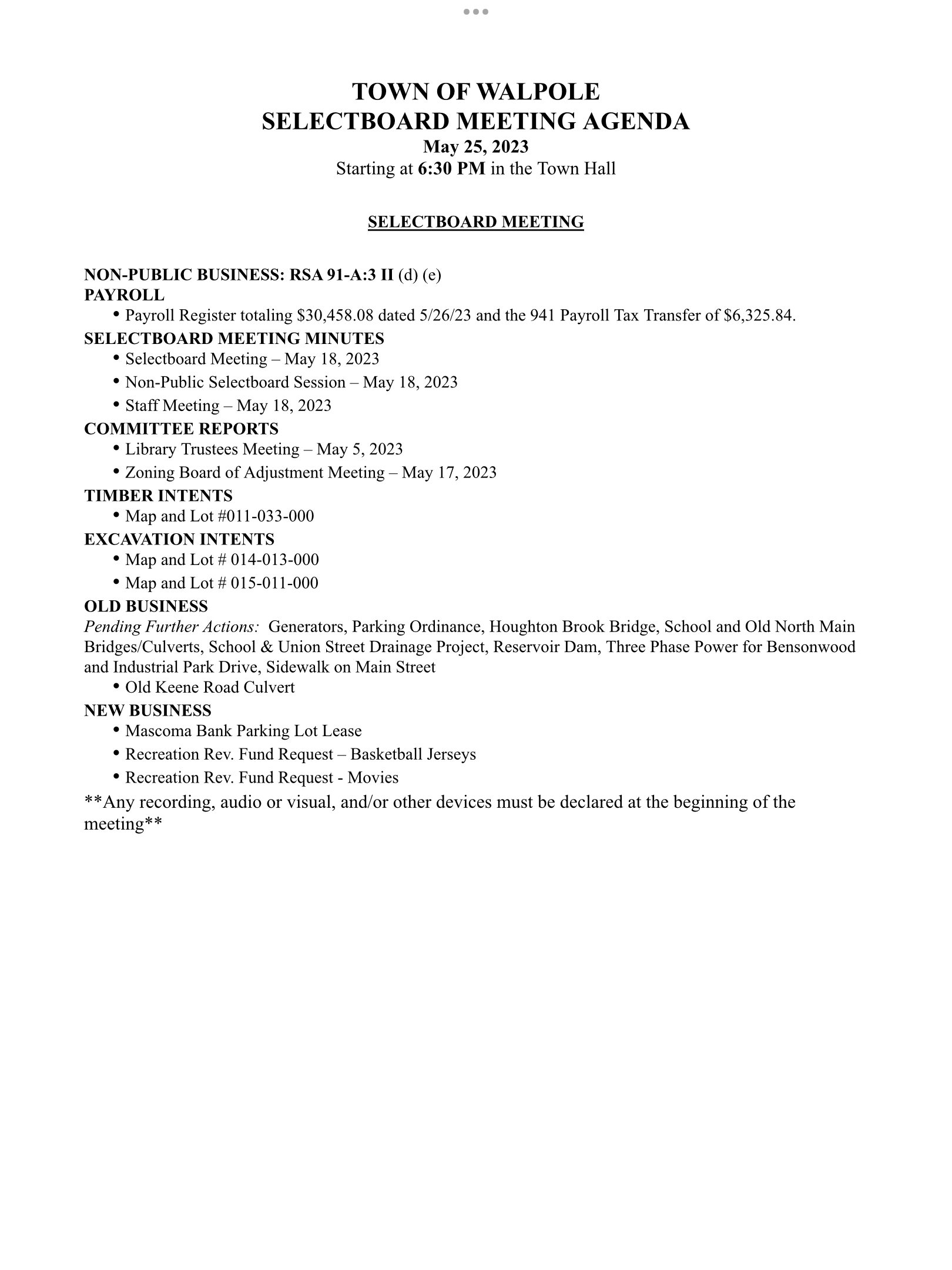 Selectboard Meeting Agenda – 5/25/we