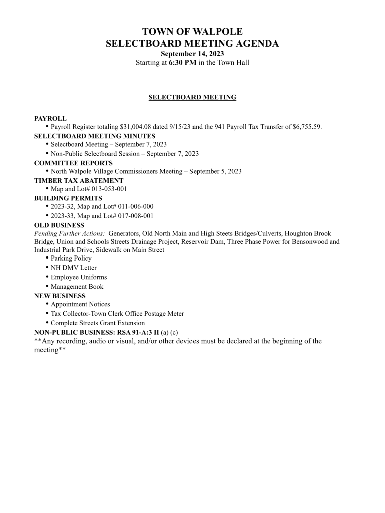 Selectboard Meeting Agenda – 9/14/23