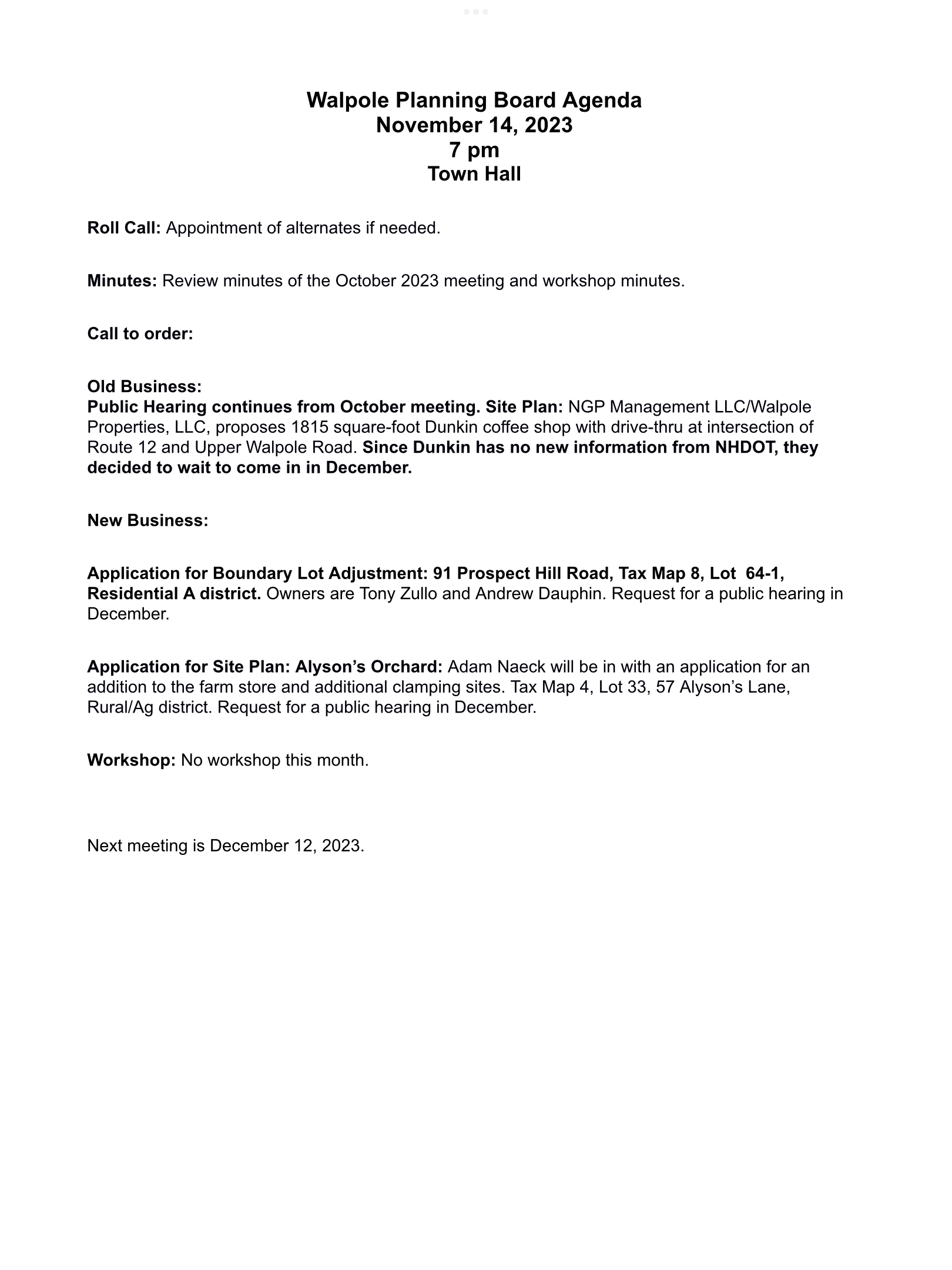 Planning Board Meeting Agenda – 11/14/23