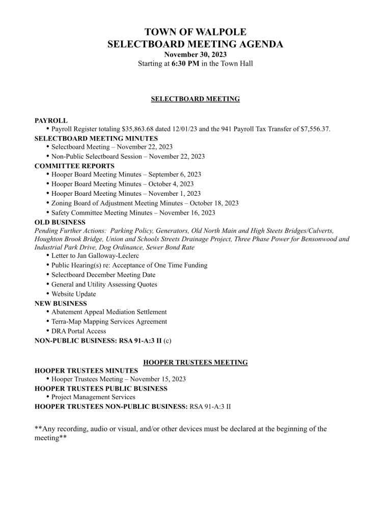 Selectboard Meeting Agenda – 11/30/23
