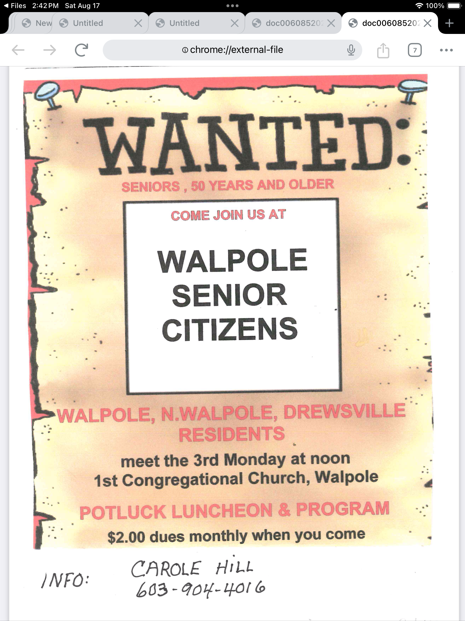 Look what I found on the bulletin board at the library. If my calculations are correct, the next Potluck Luncheon is this next Monday, August 19th! – Lil