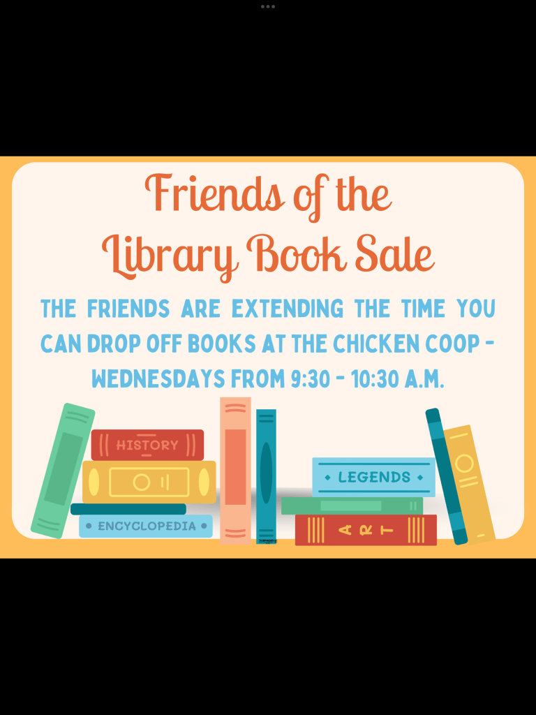 There’s still time to donate to the Book Sale! The Friends will be open for a few more Wednesdays so hurry on over!