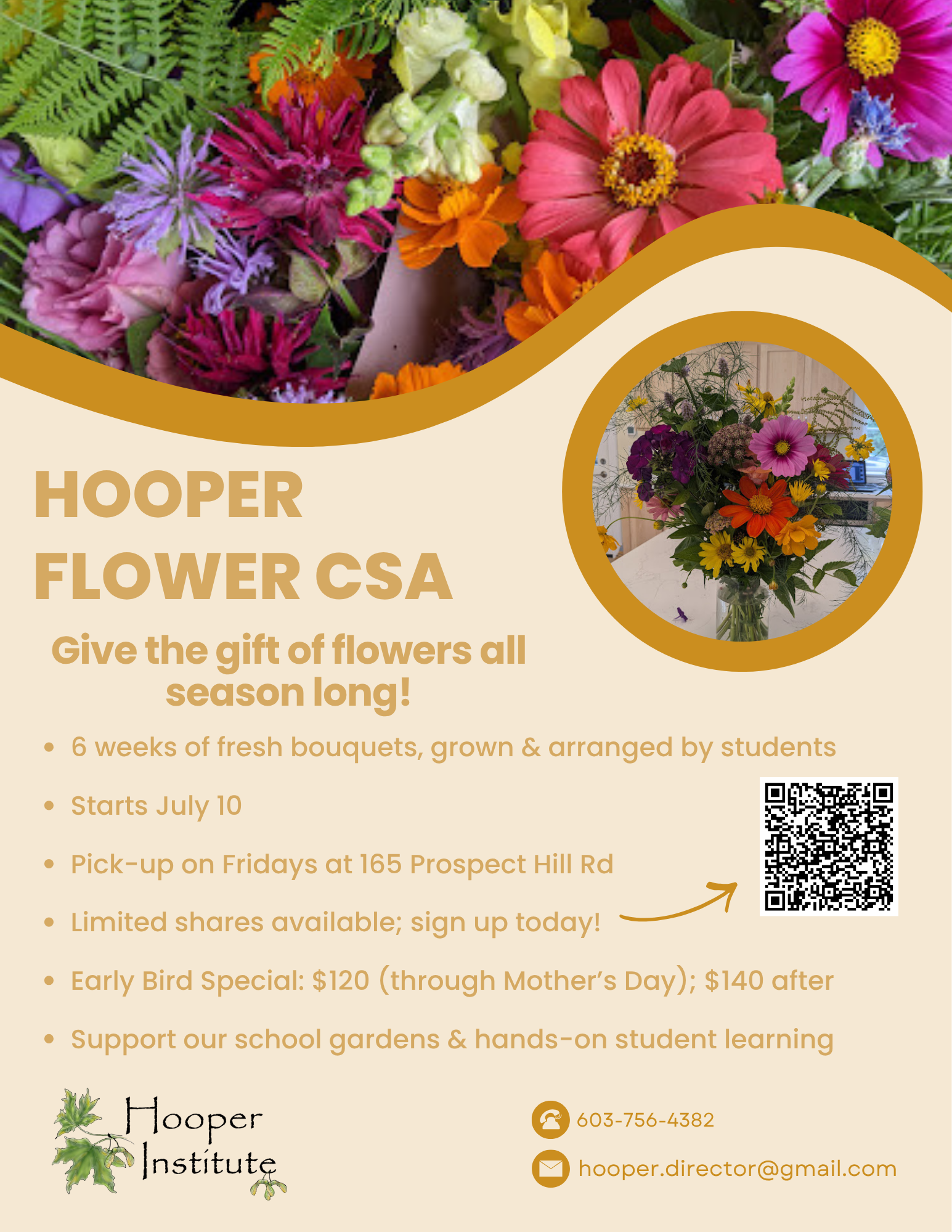 Give the gift of flowers this Mother’s Day! Our Hooper Flower CSA is back for a 5th year. Early bird pricing is available through Mother’s Day, so now is the perfect time to sign up or gift a share! Sign up here: https://forms.gle/TB8EiKnJEHwdHn659