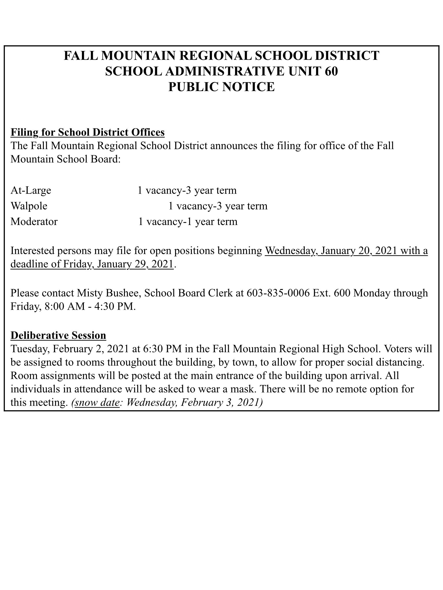 To: Fall Mountain Families, Staff and Community