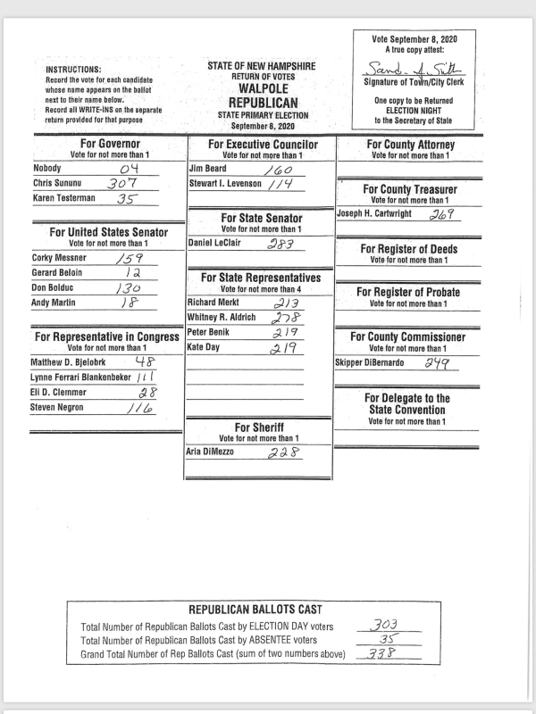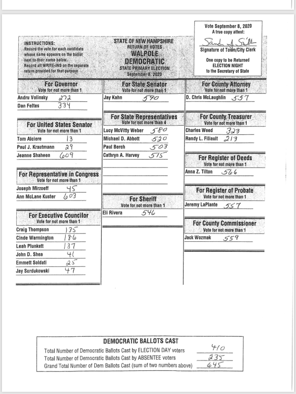 GREAT TURN-OUT FOR A Primary! Way to go Walpole! Remember, November 3rd will be here before you know it!
