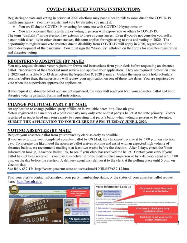 Testing: Testing is now available to everyone, and is being encouraged as a way of monitoring asymptomatic transmission. The new name is the Asymptomatic Spread Assessment Program, fondly known as ASAP, and there are test sites in both Keene and Claremont. The link to make an appointment is here: https://prd.blogs.nh.gov/dos/hsem/?page_id=8479