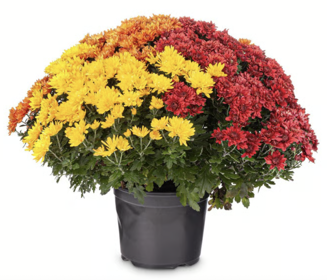 Mums are between 15 to 18 inches across, and planted in 9.5 inch pots. Colors available are red, white, yellow, and orange-bronze. We are selling them for $20 each. The mums come from a grower in Bowdoin, Maine.